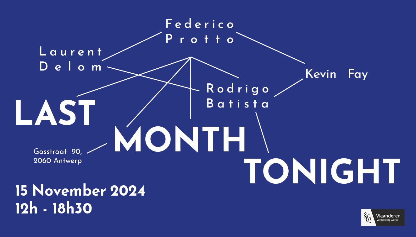 LAST MONTH TONIGHT is a platform to think together about artistic work within the framework of a generous feedback community. This time wpZimmer invites residents/artists Laurent Delom, Federico Protto, Kevin Fay and Rodrigo Batista to share their work. We invite you to spend the day together and focus, through these artists’ practices, on how to create a generous feedback community and what that entails. Afterwards we will open our blue gate for a nice get together with warm soup from de Kompaan.